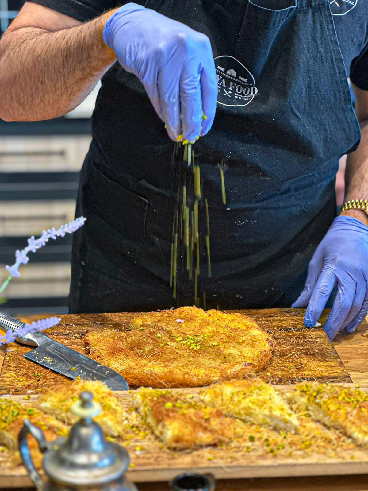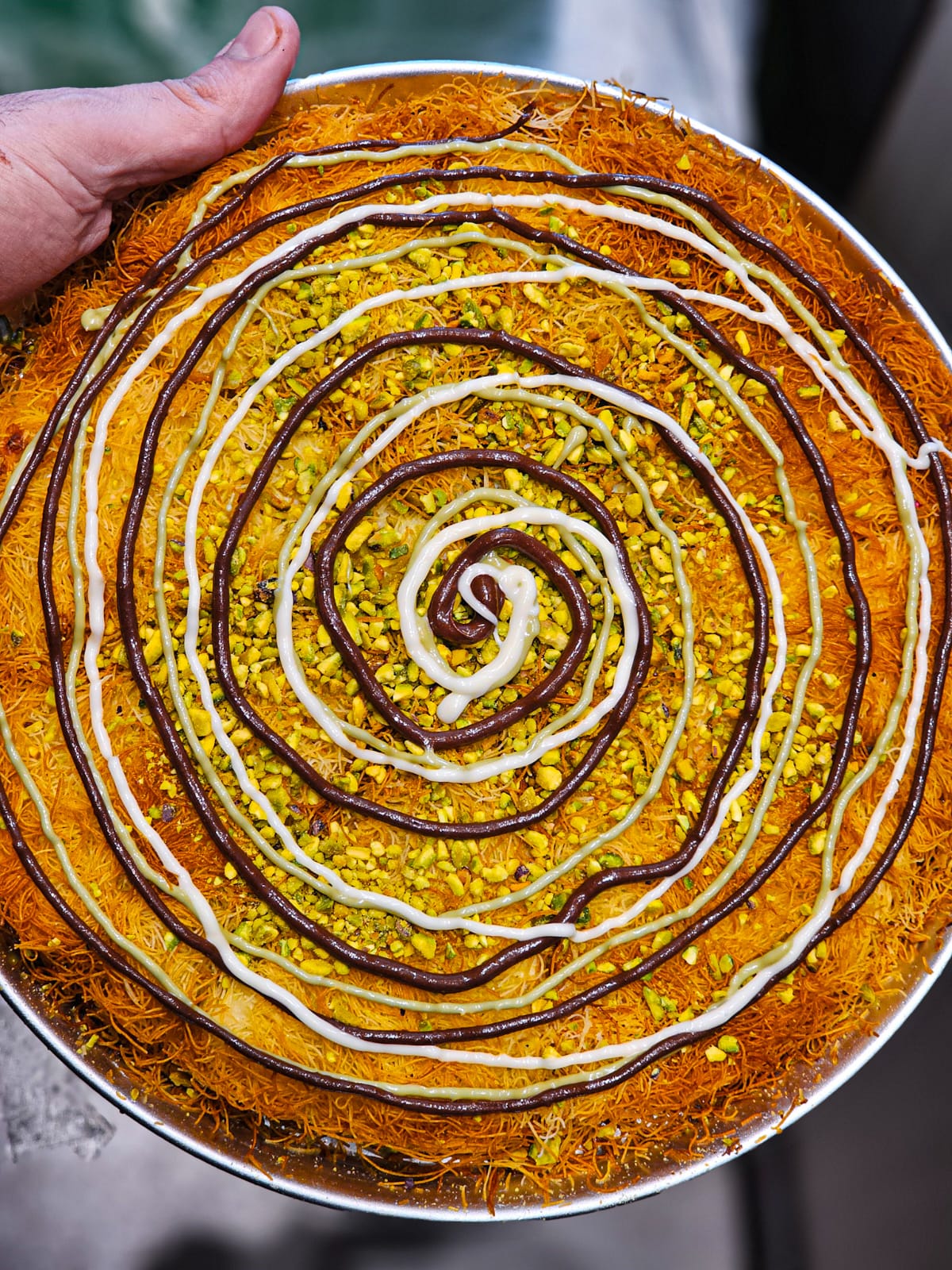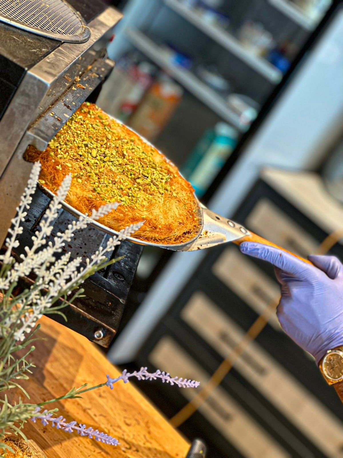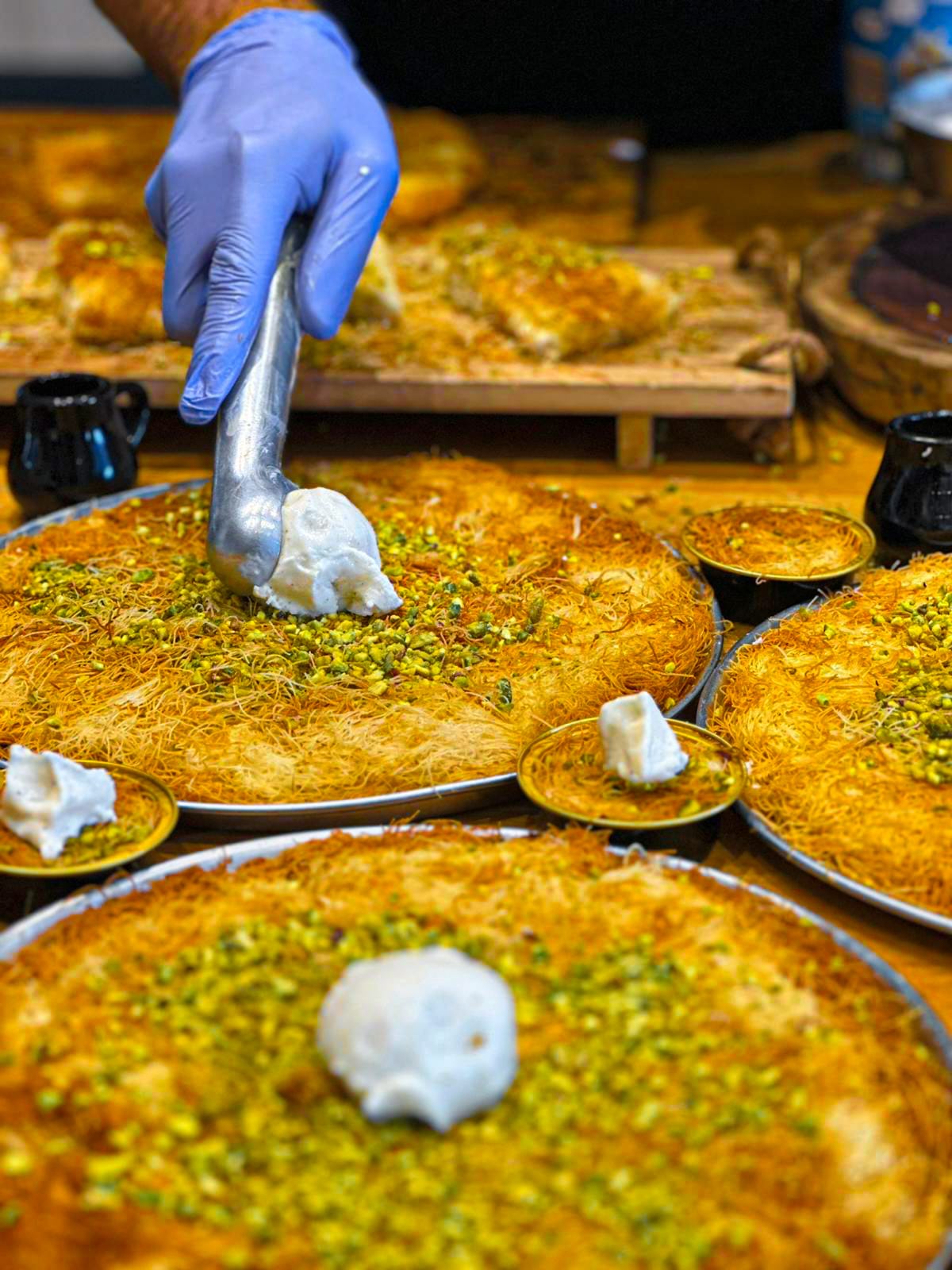 כנאפה עם גלידה שברי פיסטוק ומי סוכר כמובן