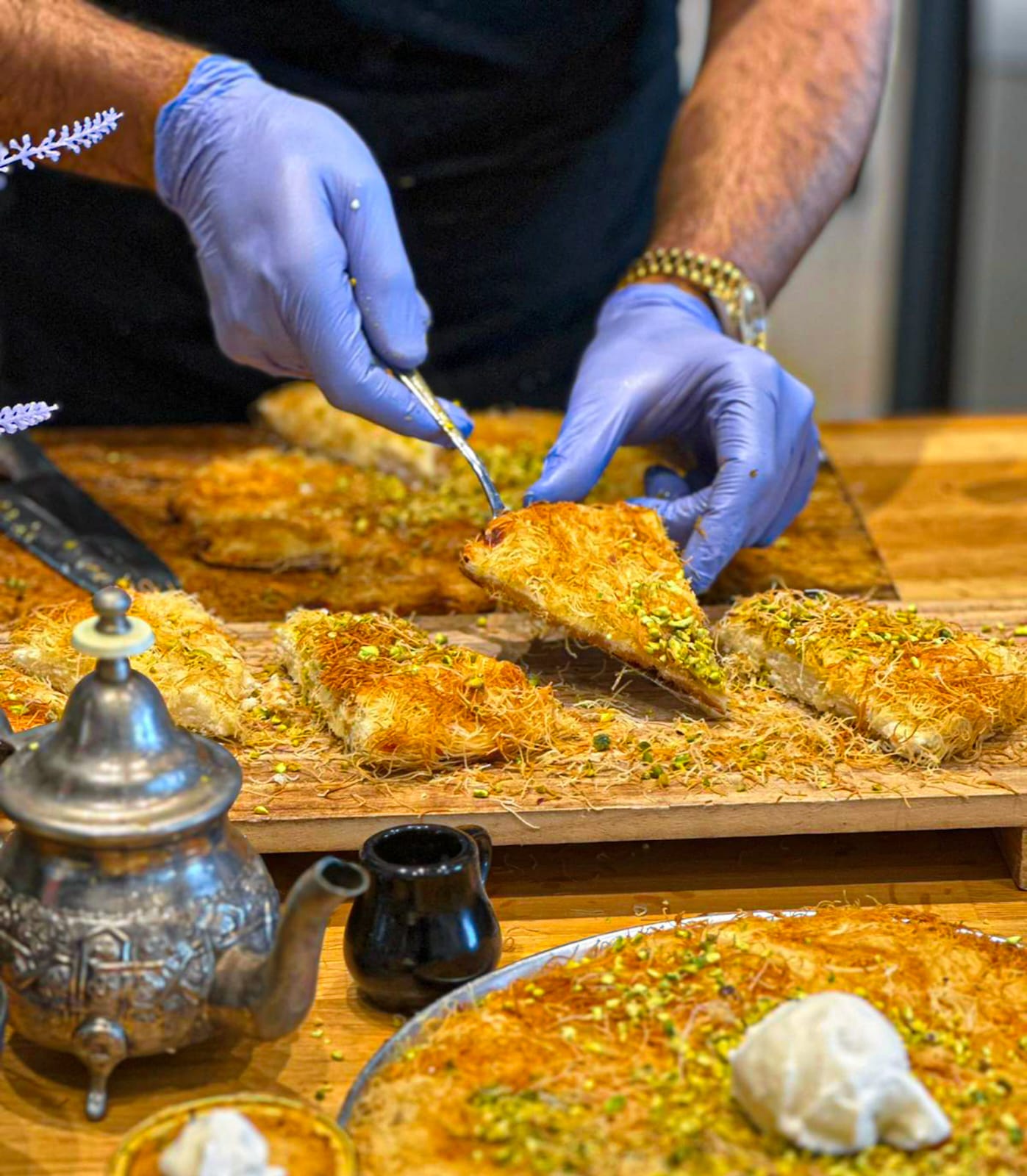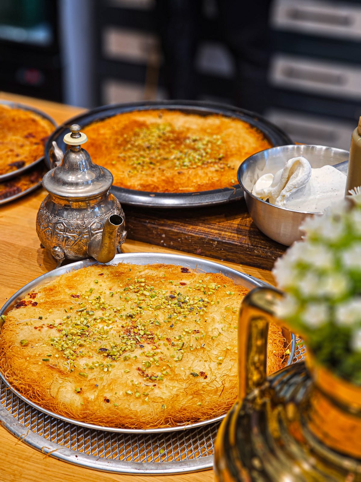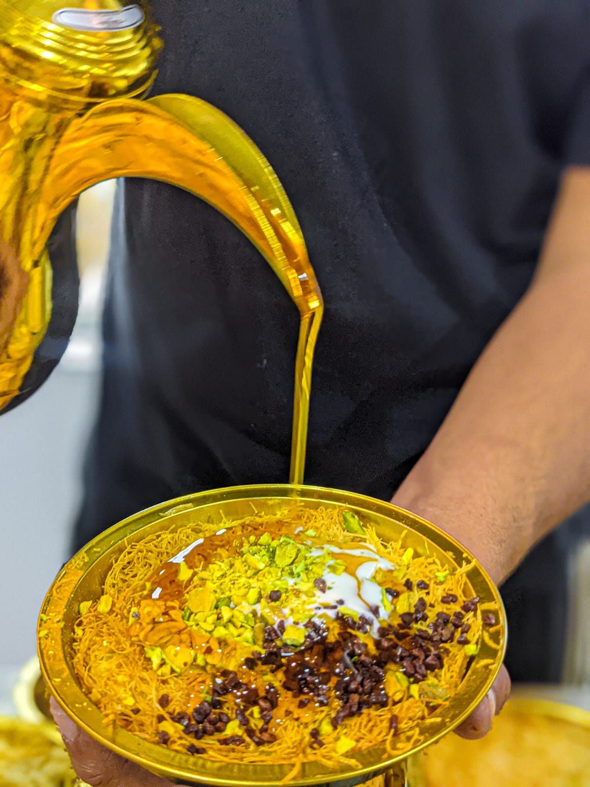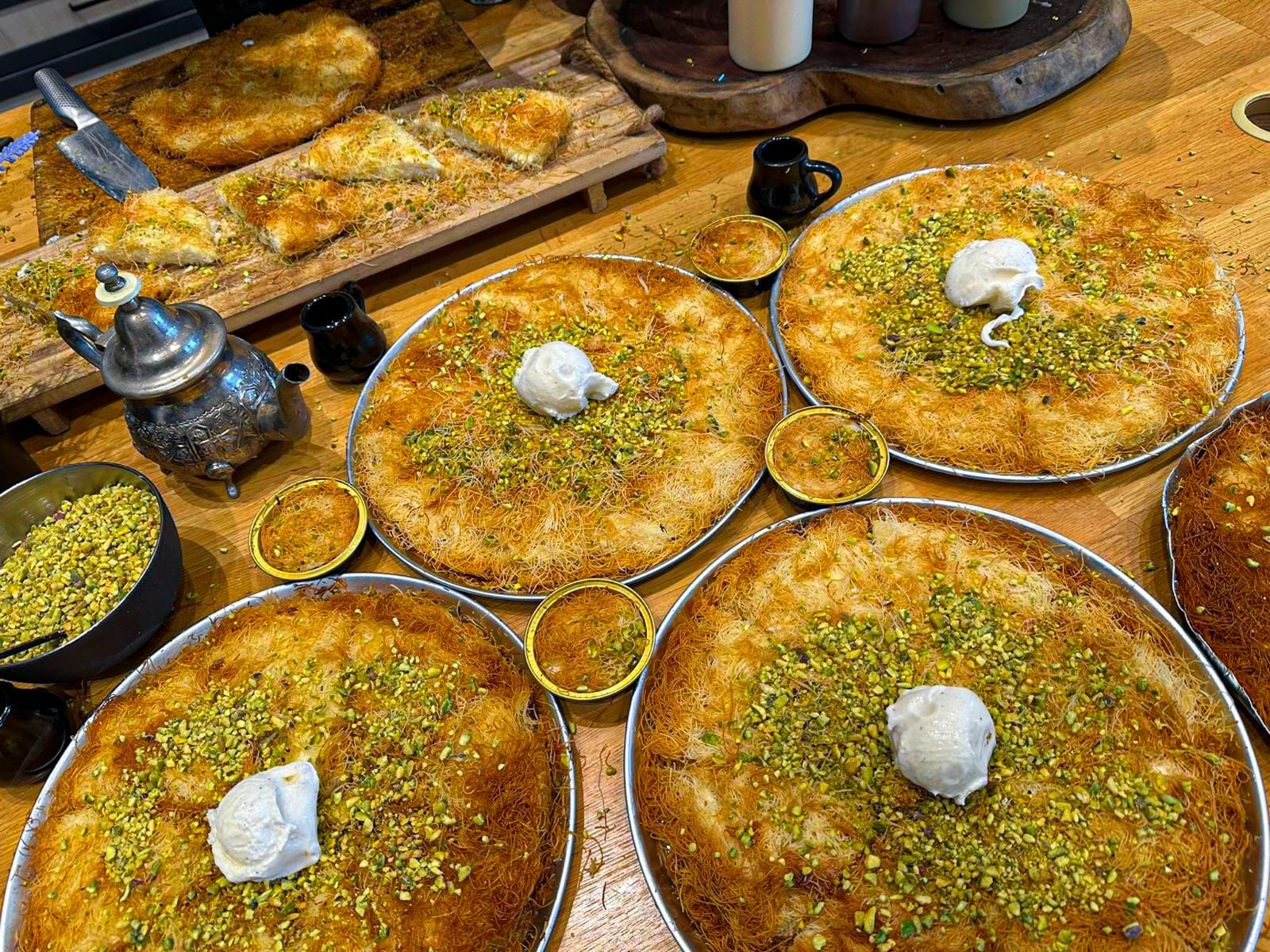 כנאפה עם גלידה שברי פיסטוק ומי סוכר כמובן