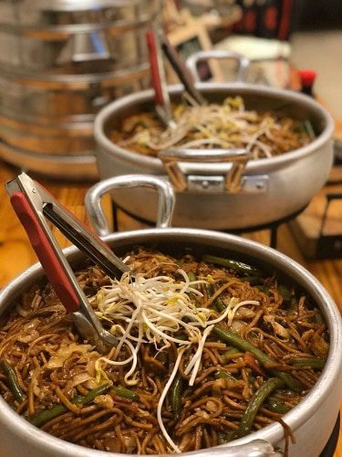 מוגש בצלחות מתאימות, צ'ופסטיקס ומזלגות