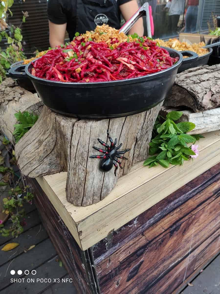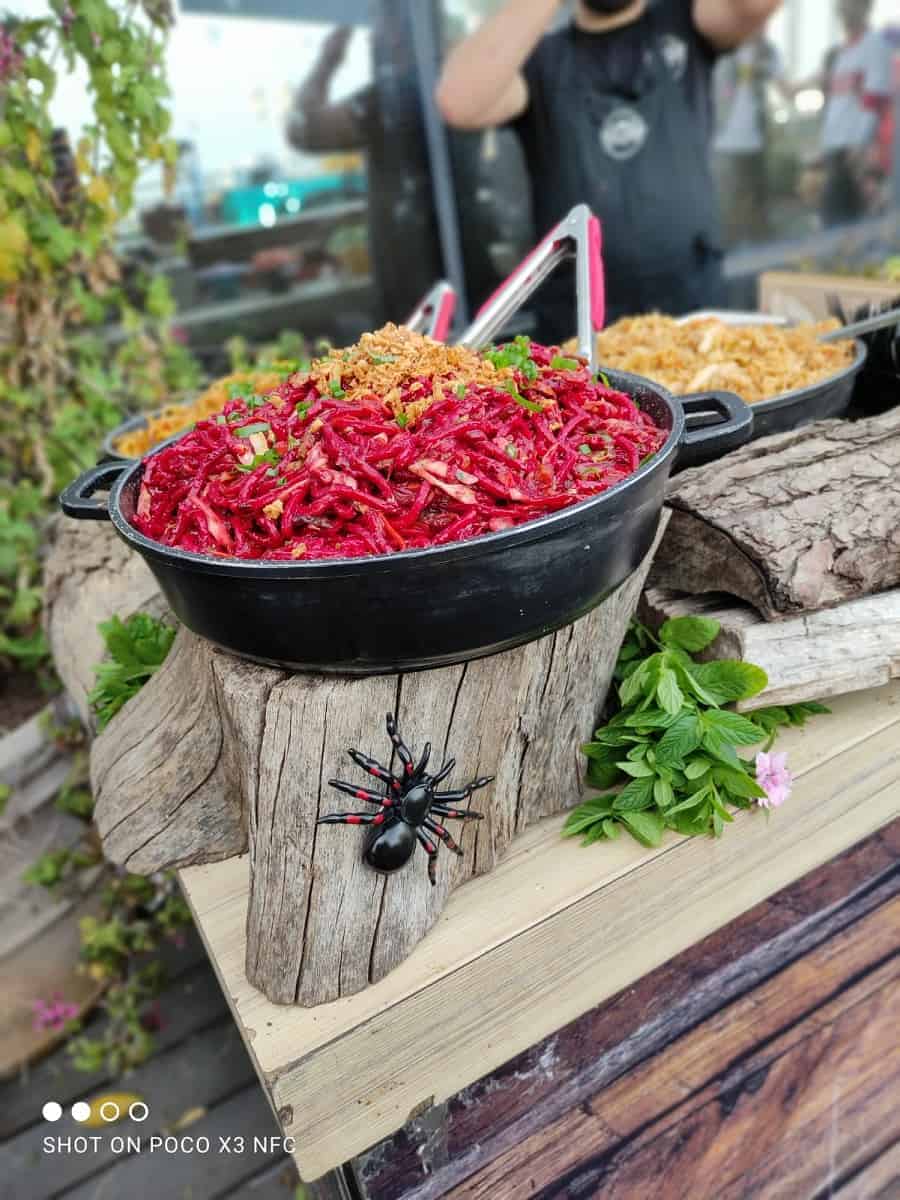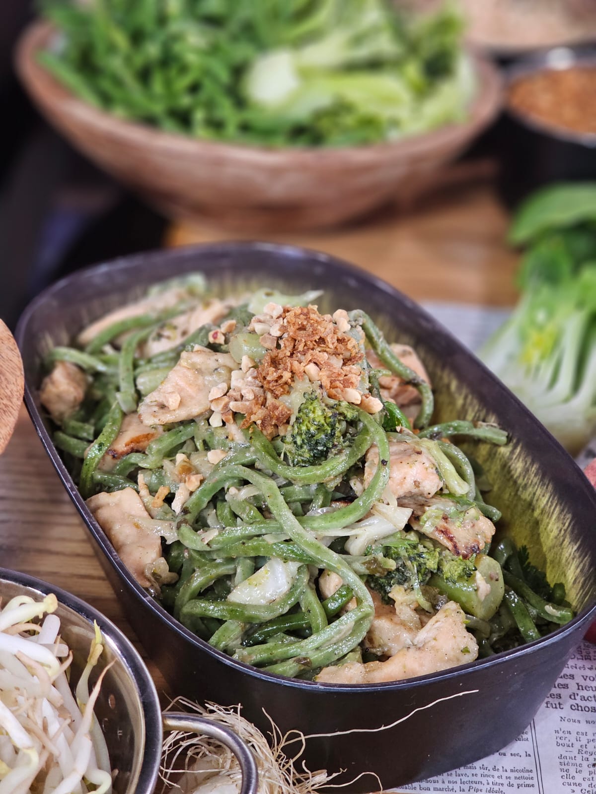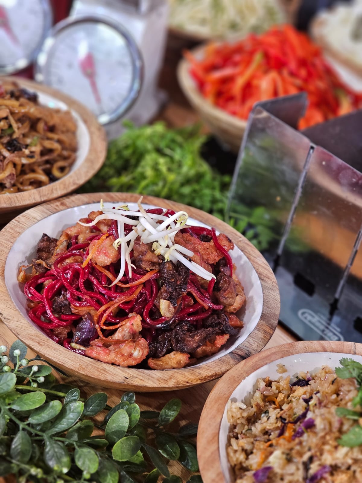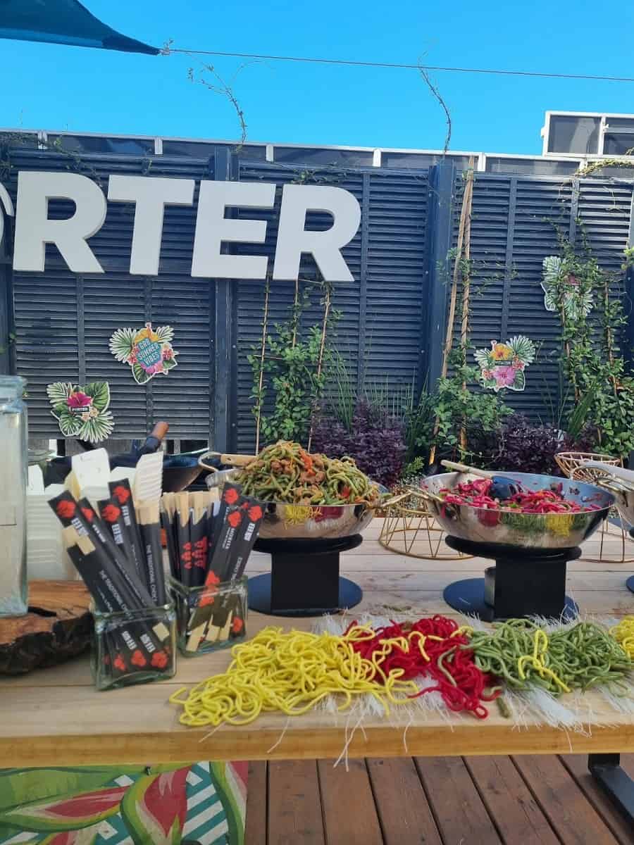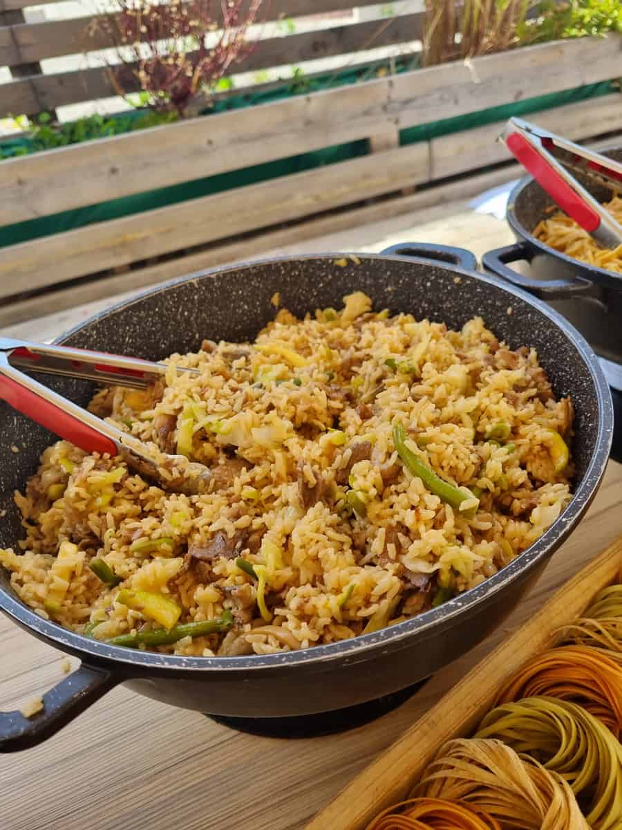 אנו מגיעים עם מחבת ווק על אינדוקציה חשמלית ומכינים את הנודלס בלייב לעיני האורחים