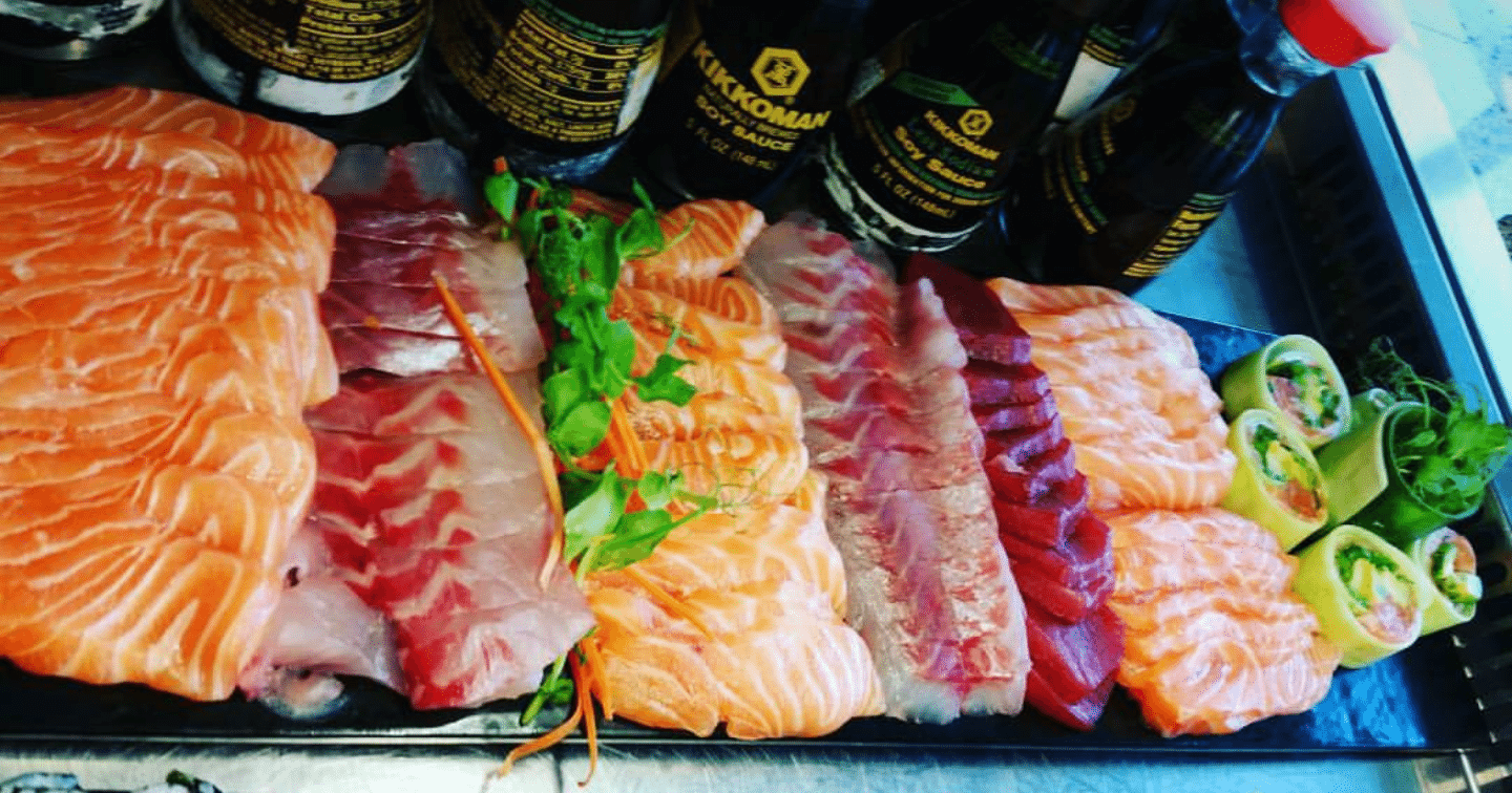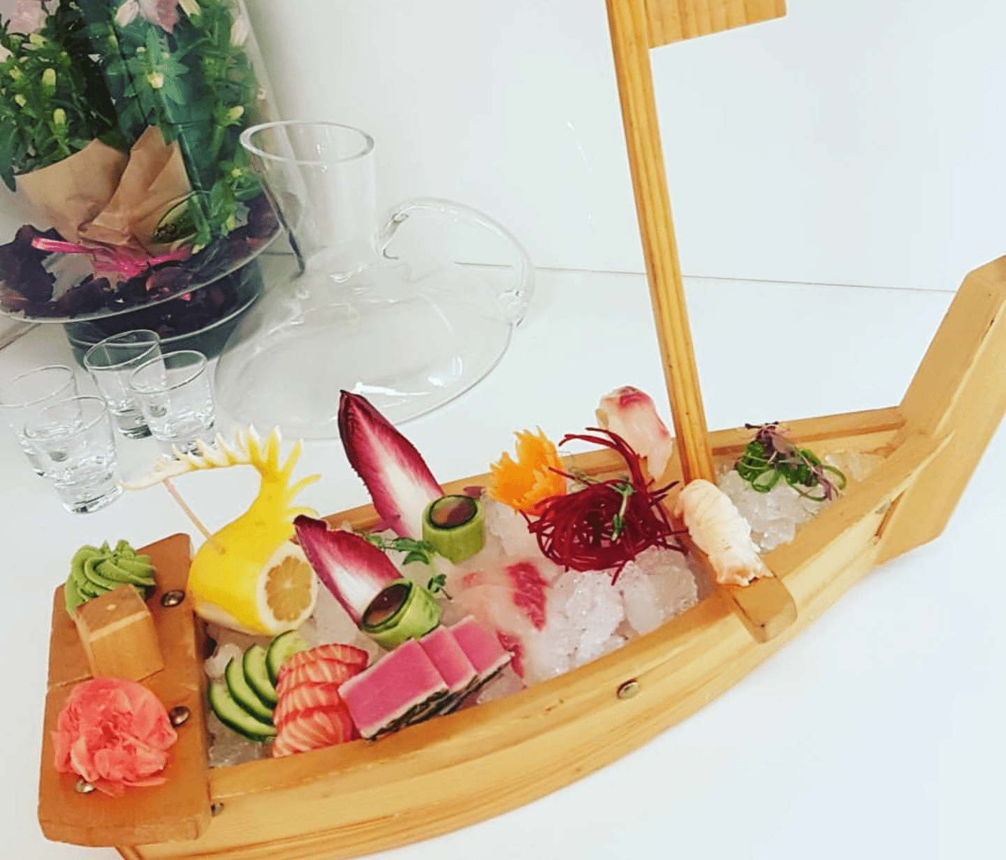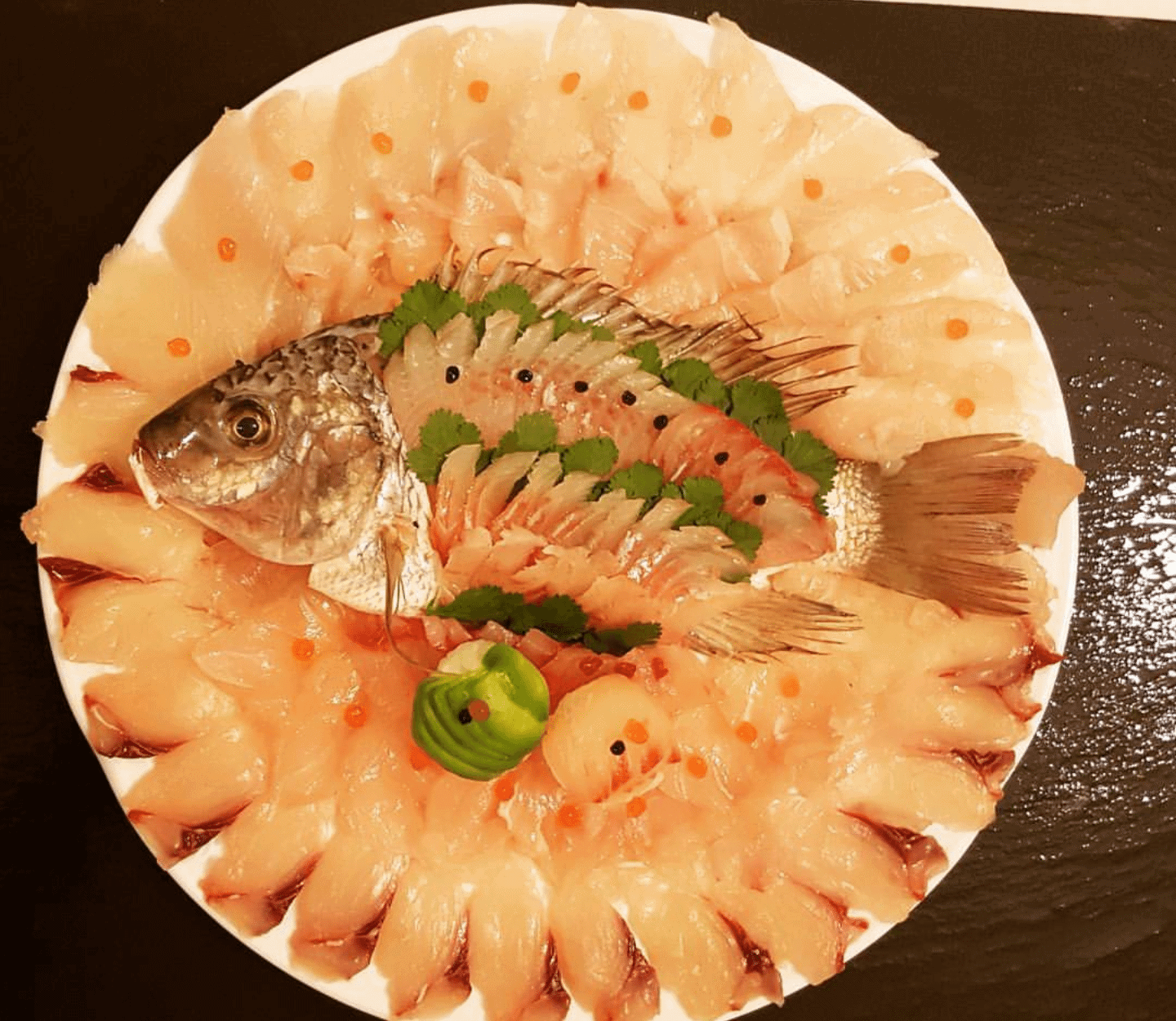 - סאשימי דג לבן .סלט שורשים.ג'ינג'ר כבוש .צילי אדום.כוסברה. ופיצוחים אסיאתיים