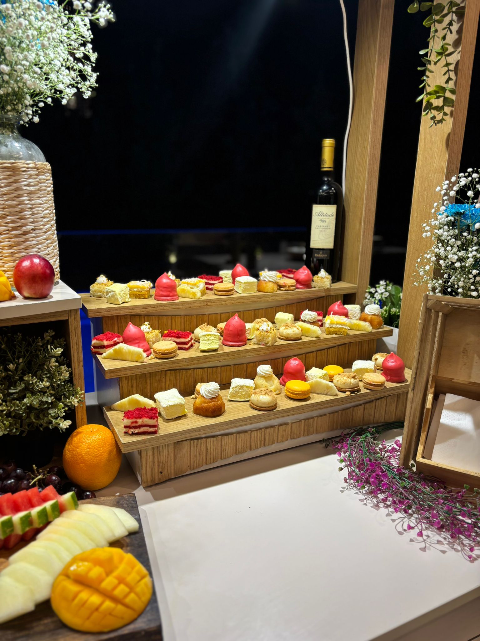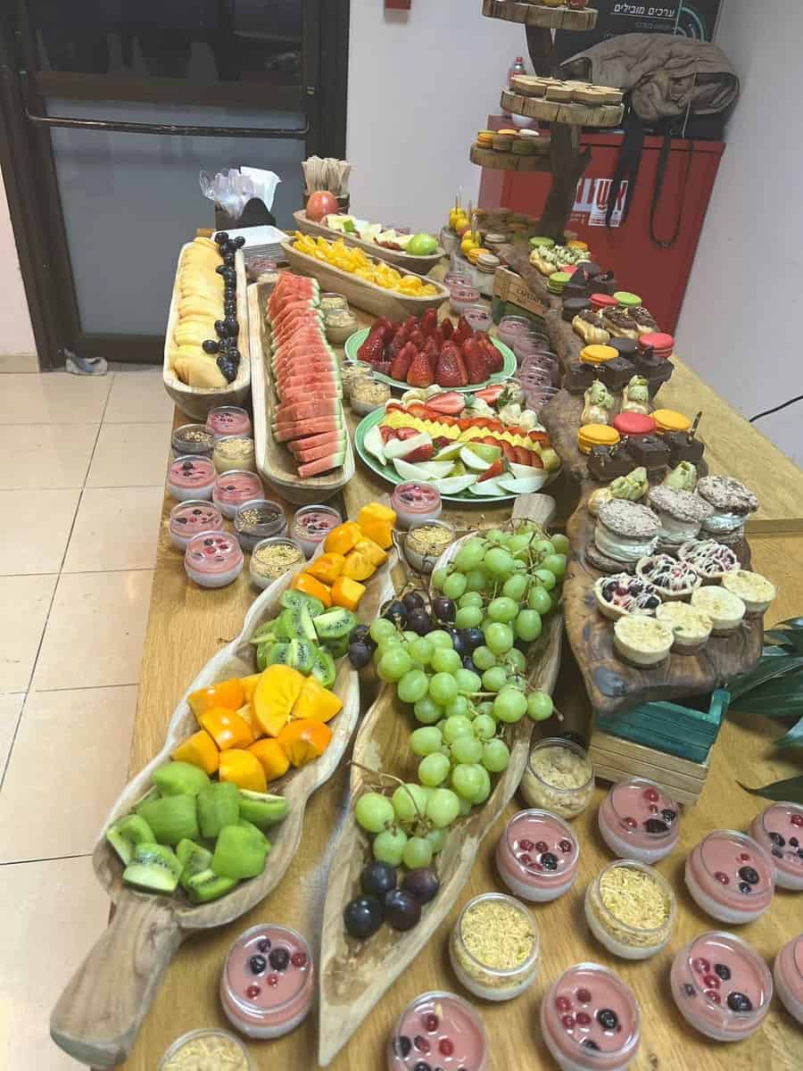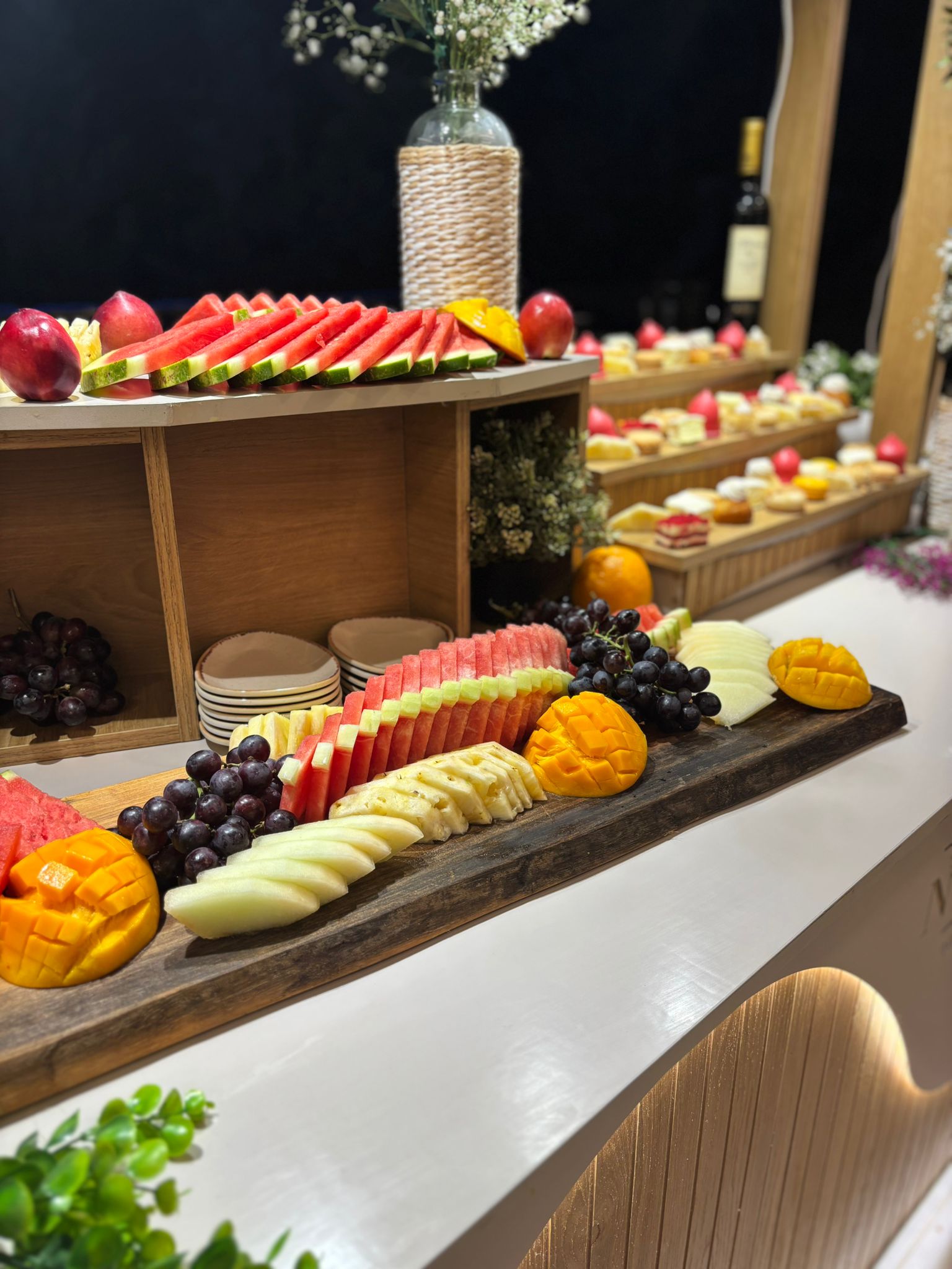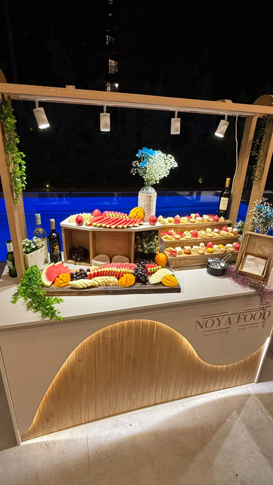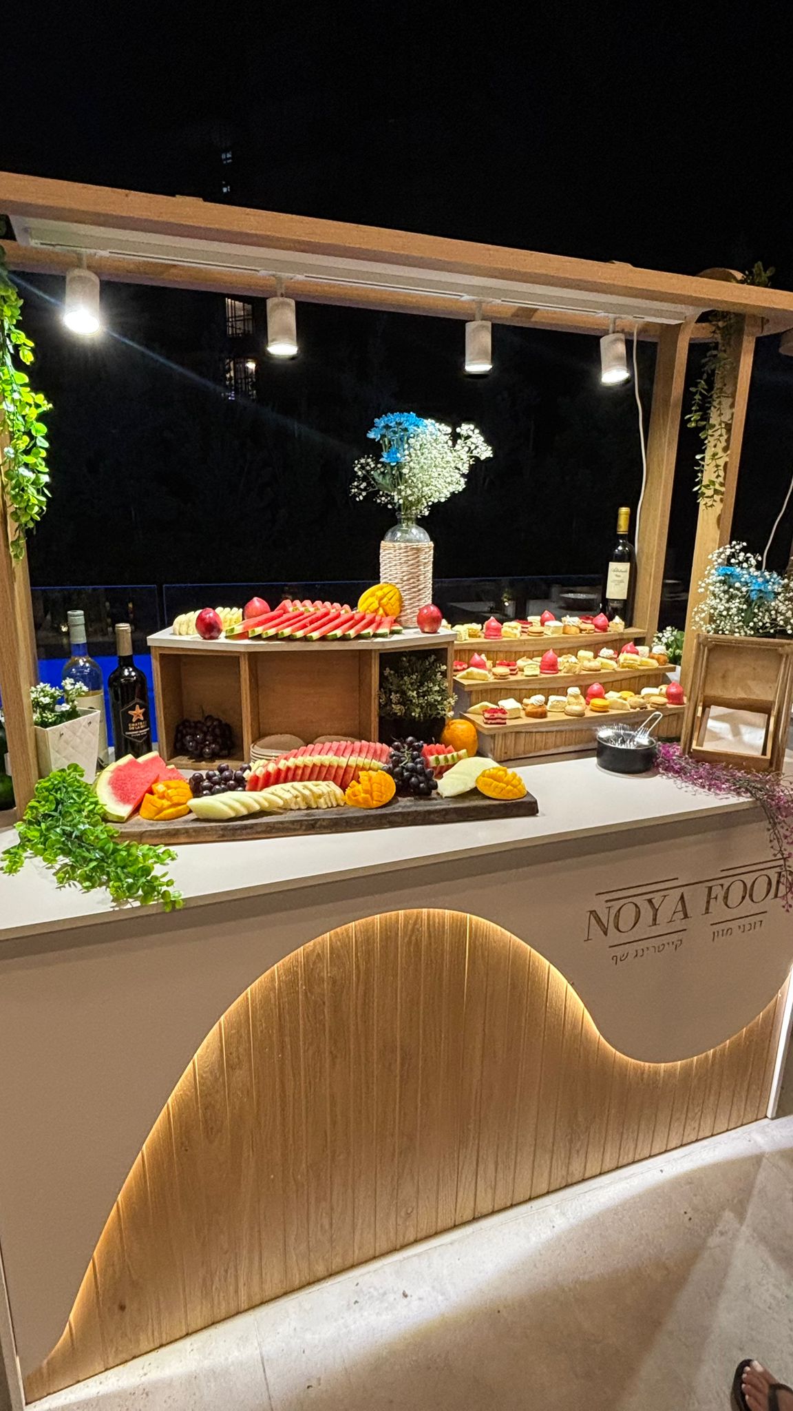 דוכן המתוקים של נויה פוד הוא דרך מצוינת לסיים כל אירוע. העמדה ניתנת להתאמה אישית, ומאפשרת לערבב ולהתאים פירות וטעמים שונים ליצירת תצוגה ייחודית ומושכת את העין. זוהי הדרך המושלמת להוסיף נופך מיוחד לאירוע שלך ולהדהים את האורחים שלך.