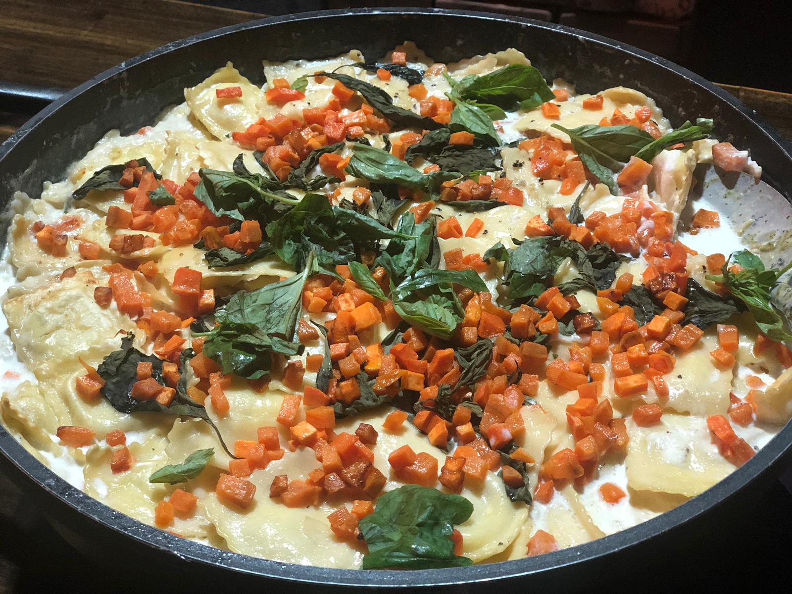 • רביולי גבינות ברוטב עגבניות ושמנת