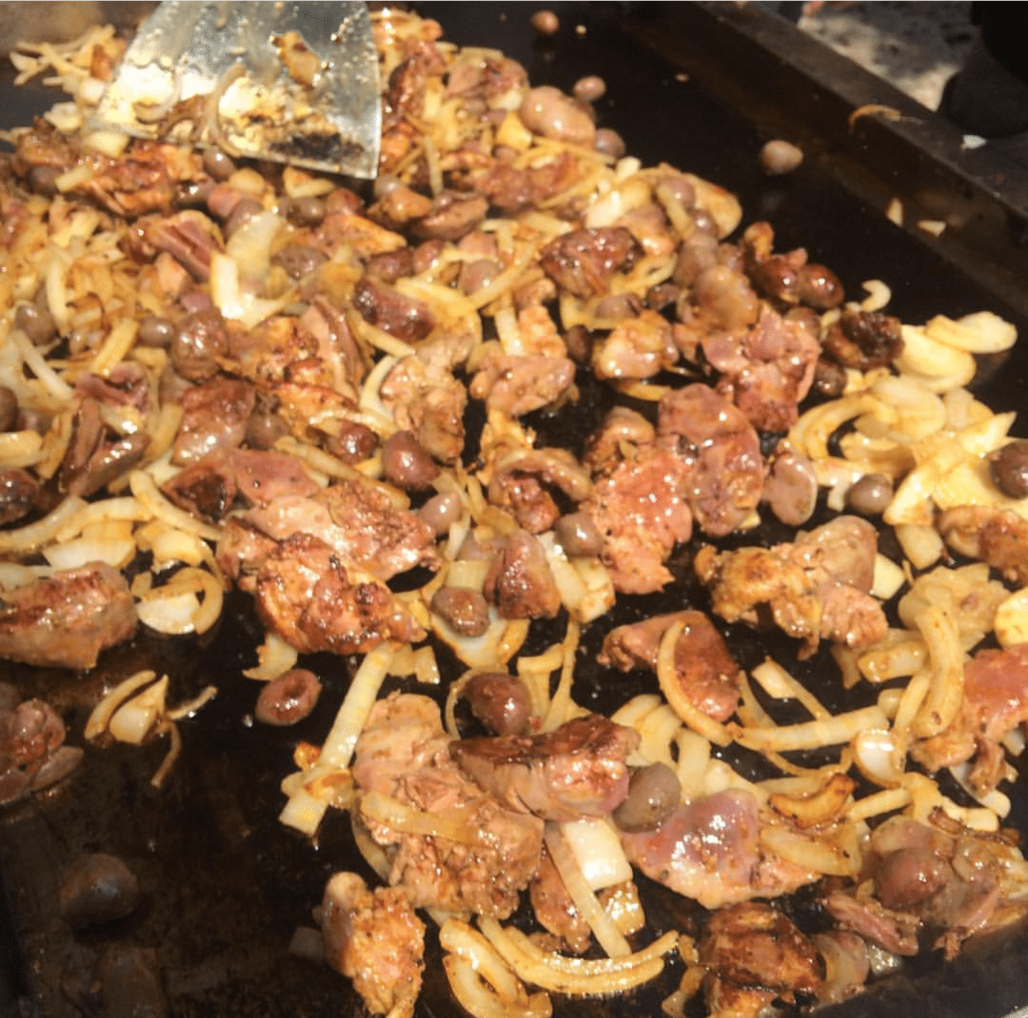 מעורב ירושלמי בתיבול מסורתי: מוקפץ על פלאנצ'ה לוהטת בהכנה פרונטאלית, עם בצל מטוגן, סלט ירקות קצוץ, מוגש בתוך מיני לאפה.