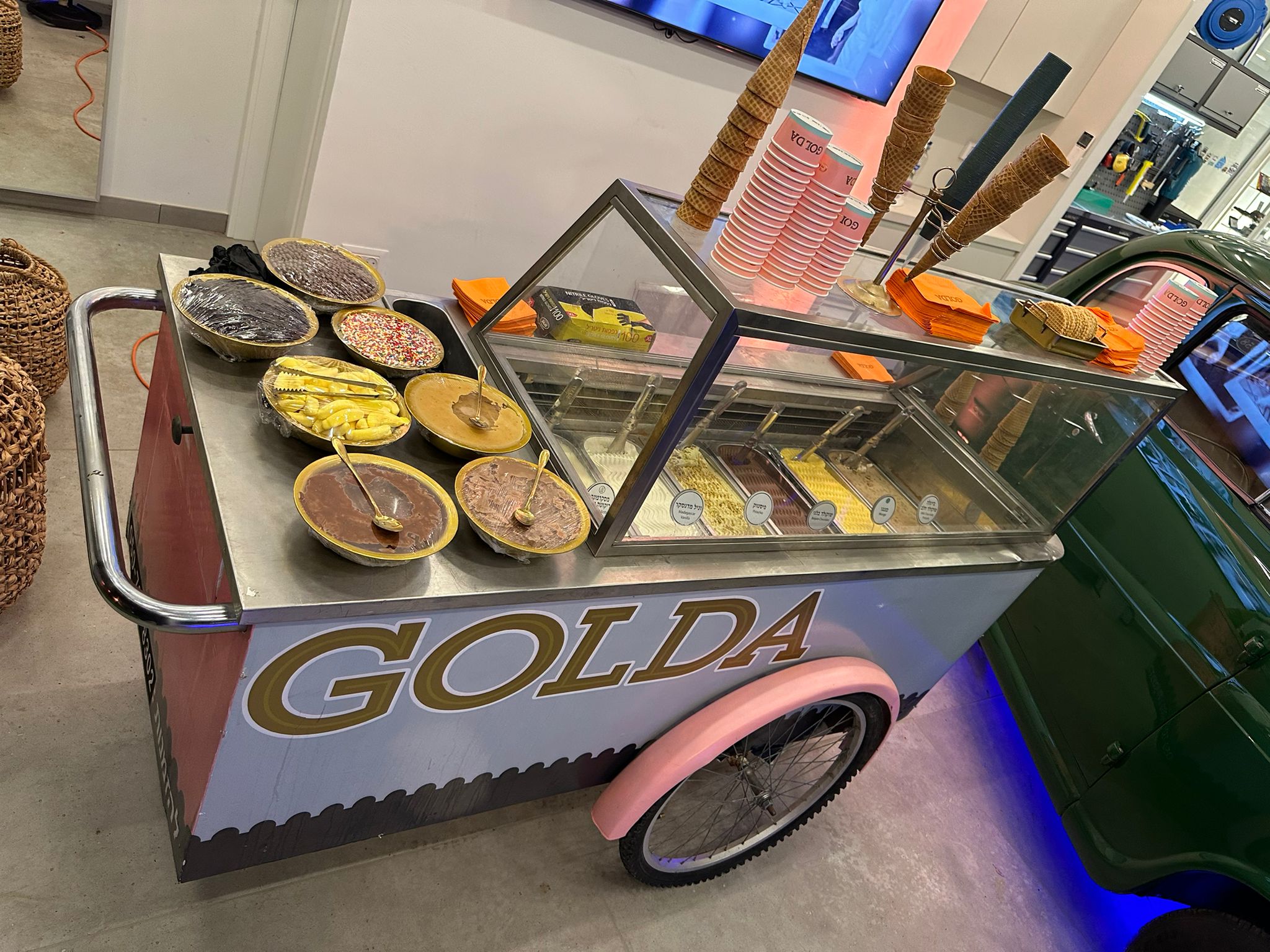באירועים בשריים תוכלו לקבל את עגלה זו עם גלידות וסורבטים פרווה,ואילו בדוכנים חלביים נגיע אליכם עם כל הטעמים האהובים של הרשת