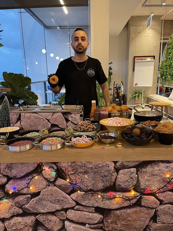 בעמדה זו נכין סופגניות מטורפות!! במגוון טעמים צבעים וקישוטים לפי בקשתכם.ניתן להכין מארזים במקום שכל עובד ייקח לבית ויכין בעצמו,