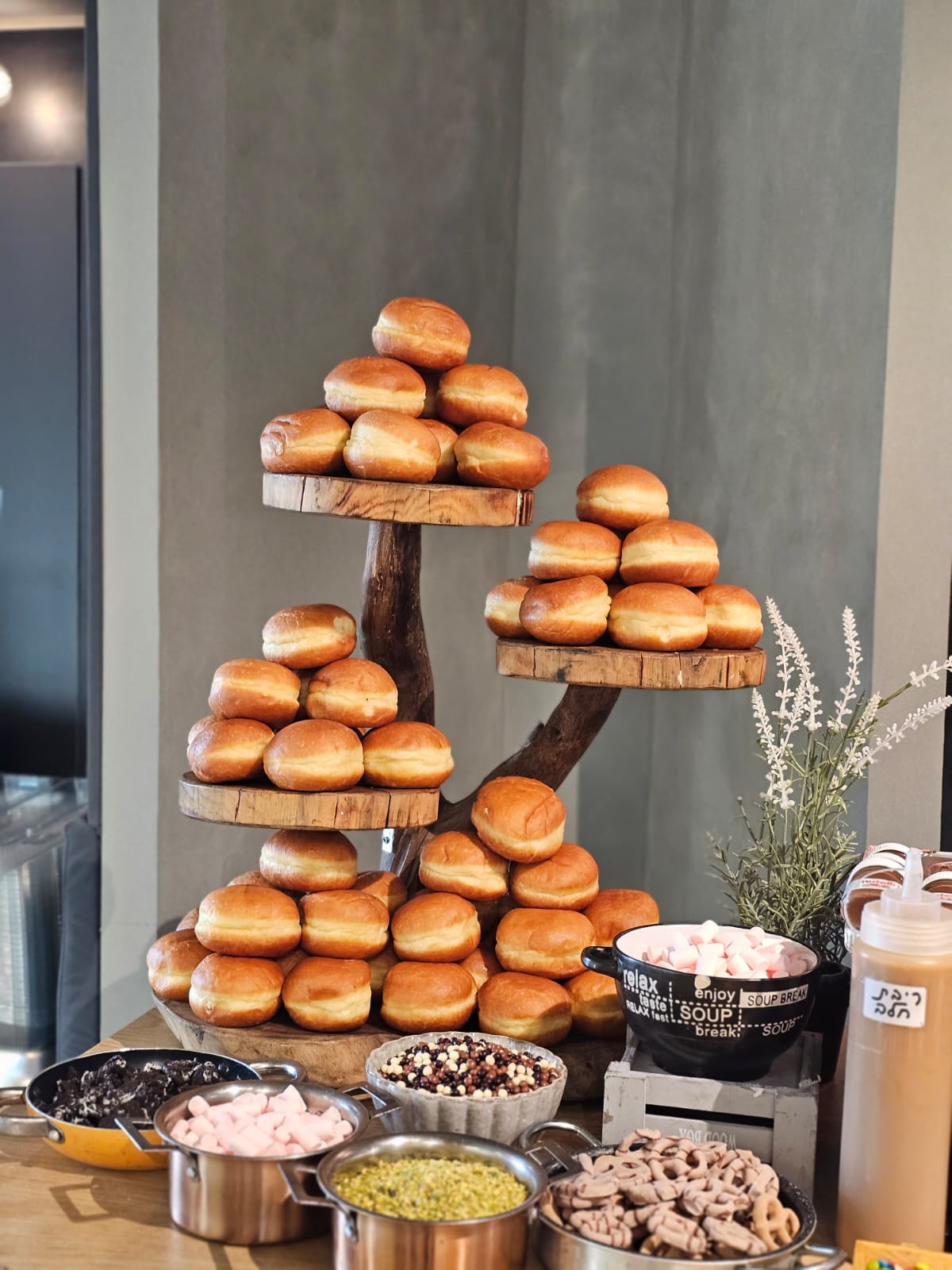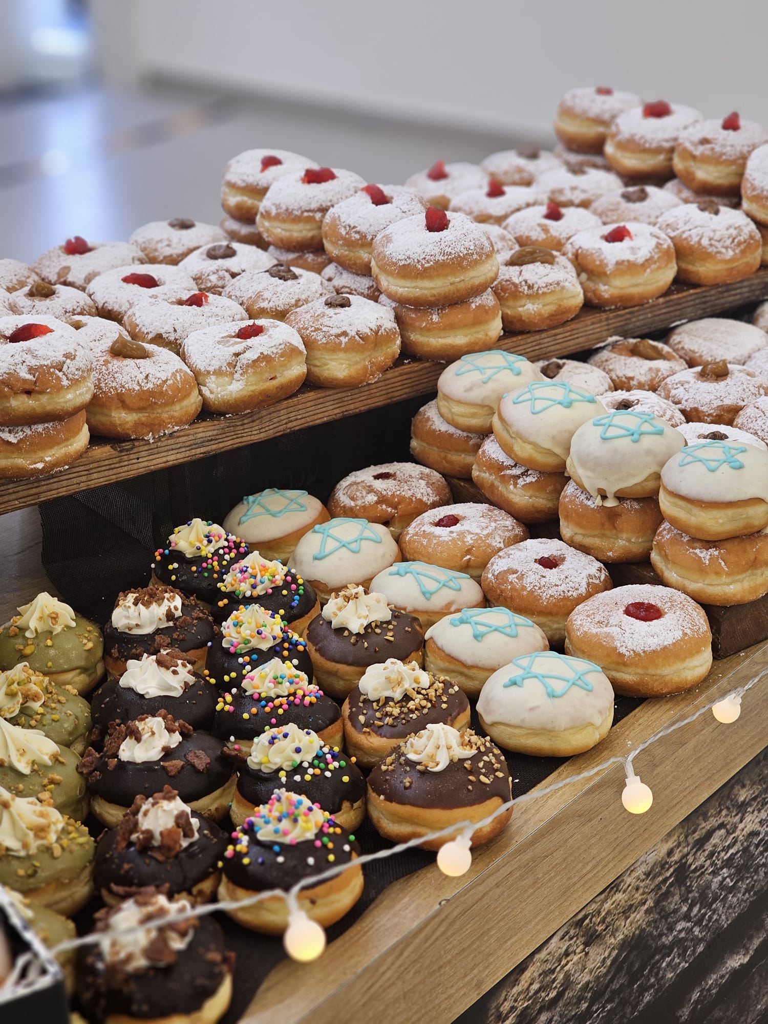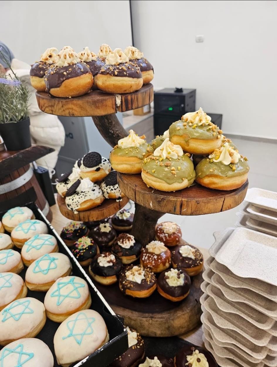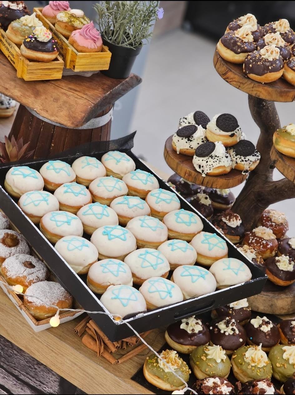 אופציה שנייה,פריסת סופגניות על דוכנים ללא הכנה בקום של מגוון סופגניות מעוצבות וגם קלאסיות,שוקולד,ריבה,ריקות,וניל,ריבת חלב