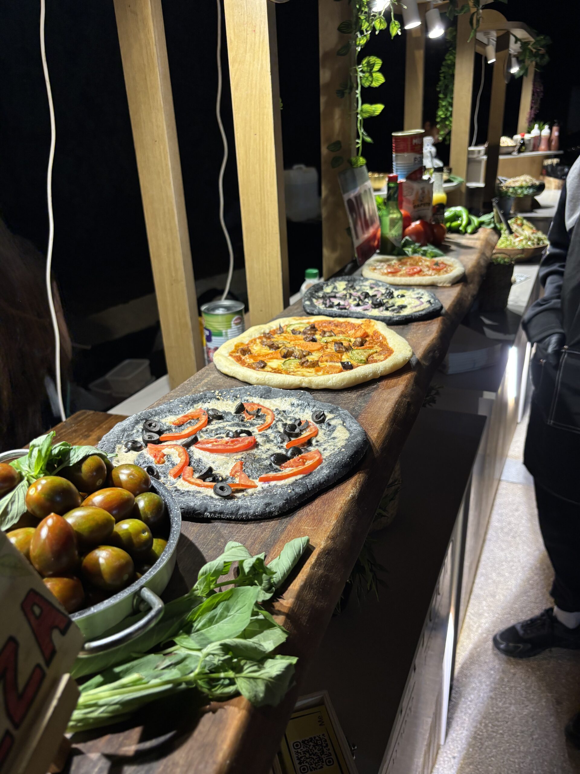 הדוכן מגיע עם מגוון רחב של טעמים וסגנונות של פיצה, כולל גם אפשרויות טבעוניות וצמחוניות המתאים לאורחים טבעוניים או צמחוניים.