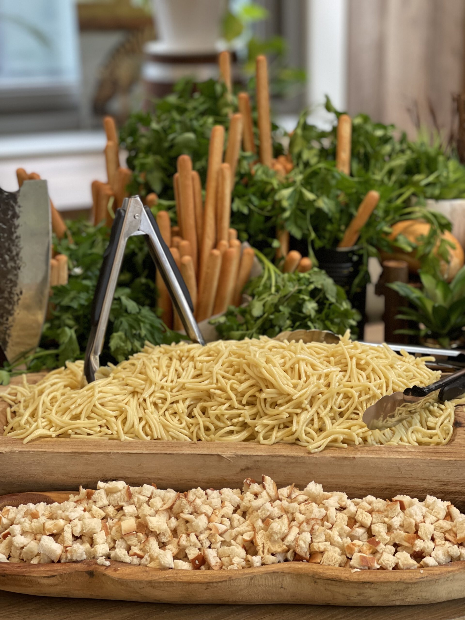 *מוגש עם קרוטונים, עירית קצוצה, גרעיני דלעת, גרעיני חמניה