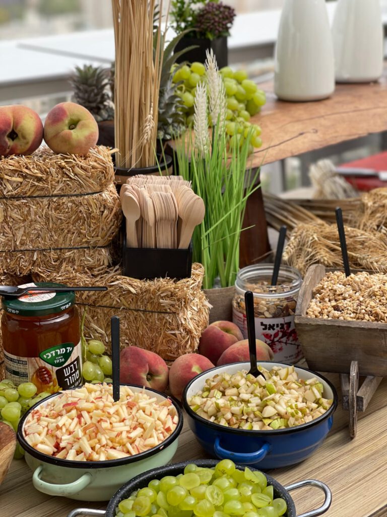 דוכן ראש השנה קונספט ראש השנה,דוכן בופה עשיר עם מגוון פירות העונה,חלות דבש, ,מאפים שתייה קלה,יין ועוד…